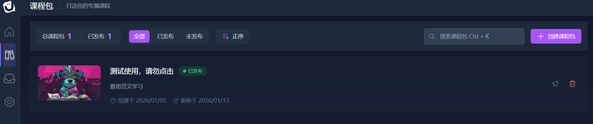 在编辑端,你可以将自己想要制作为课程内容的文本、音频和音乐上传到编辑端,点击拆分或者加工,将生成练习元素和讲解,成为一节可练习的课程。
