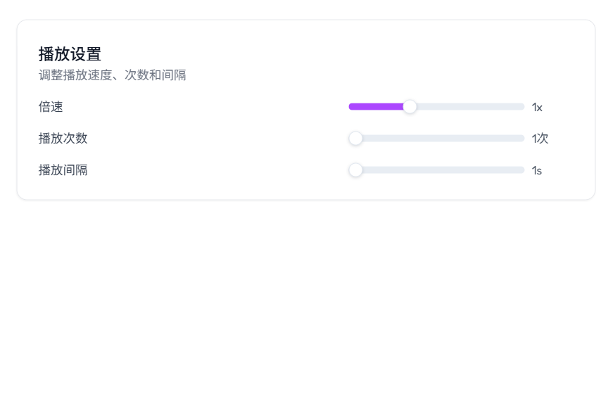 - 三阶段设置:每个阶段都可以单独开关,还能设置播放几遍、用多快的速度播放