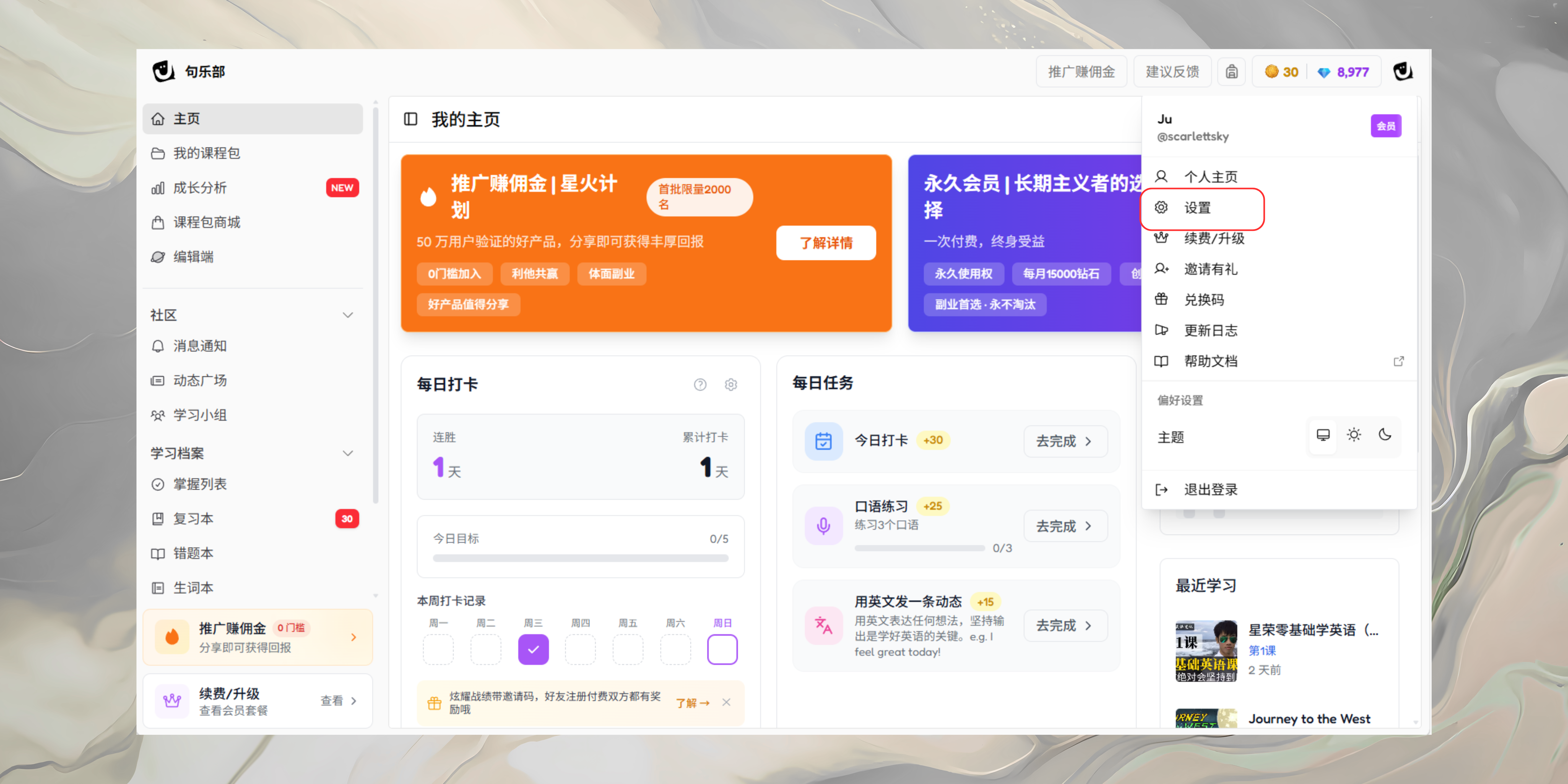 句乐部的每一项设置都可以根据你的习惯自由调整,找到最舒服的学习方式。