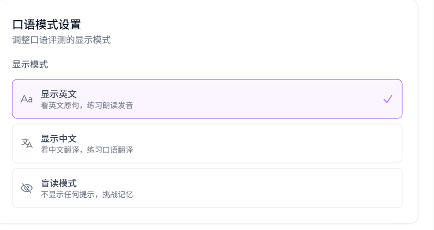 - 盲读模式:屏幕上不显示任何提示,完全凭记忆说出来