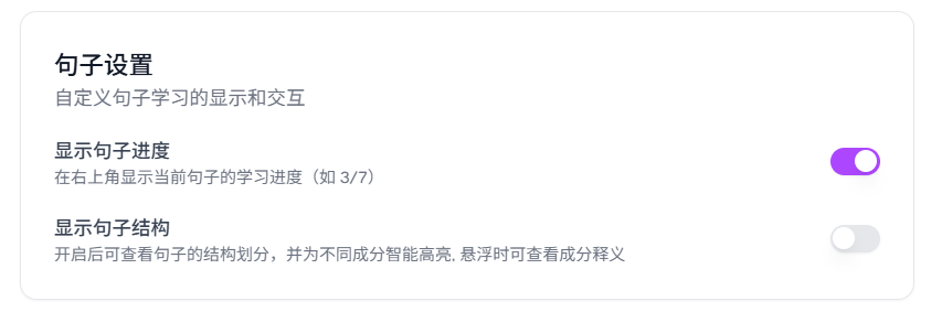 - 显示句子学习进度:在句子上方显示当前学到第几个