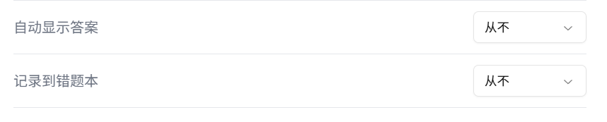 - 答错几次后显示答案:可以关闭,也可以设置答错 1-5 次后自动显示正确答案