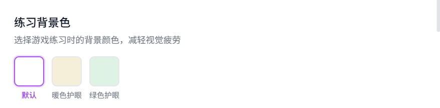 - 练习背景色:除了默认的白色/深色,还有暖色护眼和绿色护眼两种柔和配色